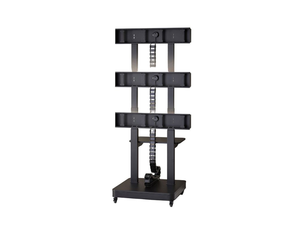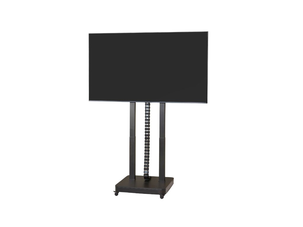 Das TV Lift system ist ein komplettes AOKE-Hebesystem mit integrierten Hubsäulen und stabiler Basis. Es ermöglicht eine sanfte Höhenverstellung per Fernbedienung. Dank vier arretierbarer Rollen lässt sich das System flexibel zwischen Räumen bewegen.