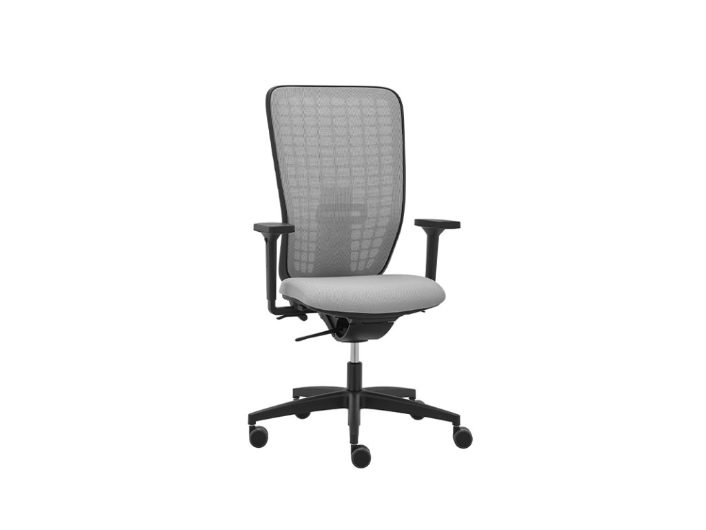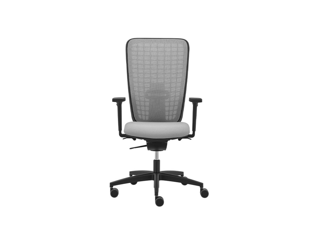 SPACE is an ergonomic office chair designed for maximum comfort and proper posture. It combines timeless aesthetics with advanced ergonomic functionality. The breathable grey mesh (Tale 494) and soft Tonal 3206 fabric seat ensure a comfortable and durable seating experience.