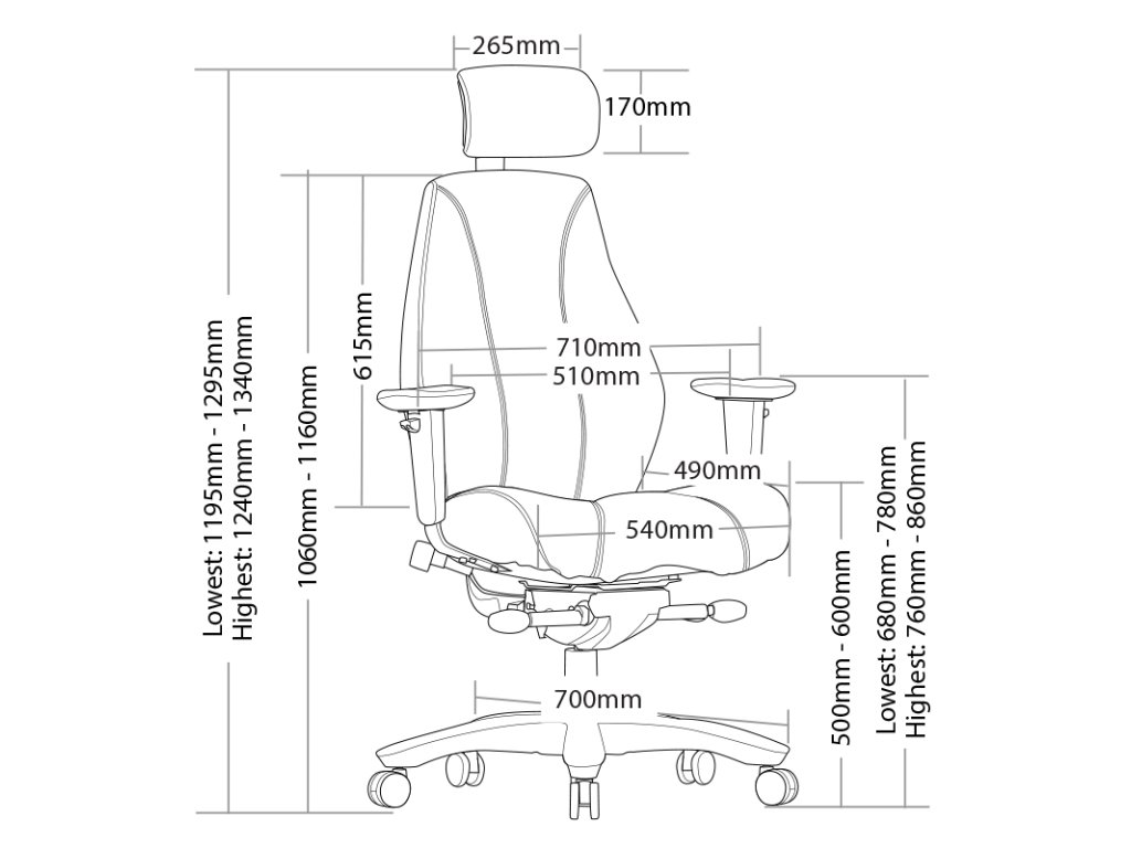 Synchronná mechanika a viacnásobné možnosti nastavenia zabezpečujú optimálnu polohu pri sedení. Výškovo nastaviteľná opierka hlavy, bedrová opora a nastaviteľné podrúčky znižujú únavu a napätie svalov. Nastavenie tuhosti operadla podľa hmotnosti používateľa poskytuje individuálne prispôsobenie.